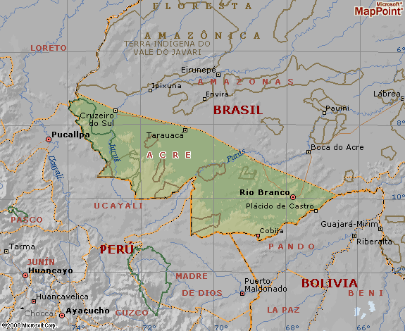 A B C D E F G H I J K L M N O P Q R S T U V X Z Y W ![]() BANDEIRA DO ACRE Acre é uma das 27 unidades federativas do Brasil. Localiza-se no sudoeste da Região Norte e faz divisa com duas unidades federativas: Amazonas ao norte e Rondônia a leste; e faz fronteira com dois países: A Bolívia a sudeste e o Peru ao sul e a oeste. Área: 152.600 km² (58.910 milhas quadradas) MAPA DO ACRE