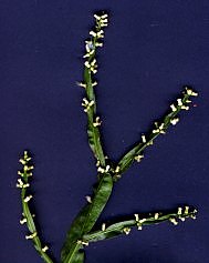 eretas, lenhosas na base. Ramos trialados, folhas nulas, alas